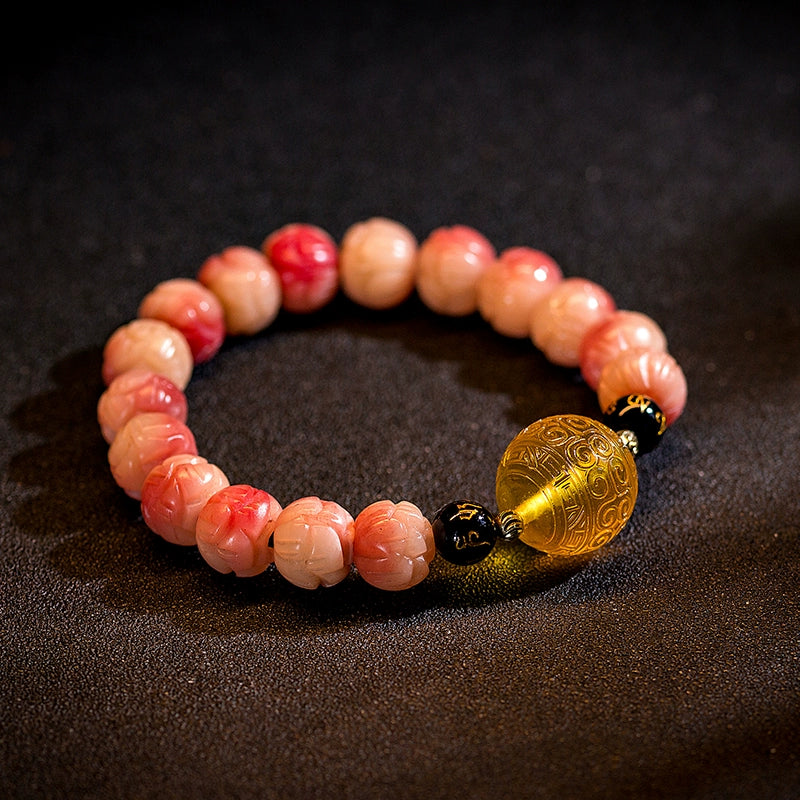 Immerse yourself in the spiritual richness of Tibetan culture with this handcrafted Camel Bone Lotus Mala Bracelet, featuring natural full-blood camel bone beads intricately carved with lotus motifs, paired with citrine, obsidian, and Six-Syllable Mantra beads.